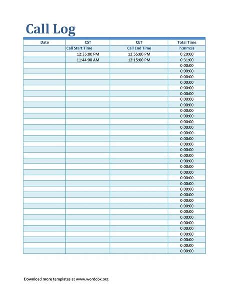 5 Best Images of Printable Call Log Sheet Free Printable Phone Call