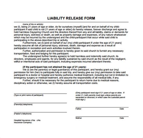 FREE 9+ Sample Release of Liability Forms in PDF MS Word