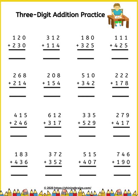 3 Digit Addition Worksheets With Regrouping Math Worksheets Printable