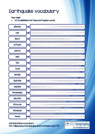 Free earthquake worksheets for use when learning all about earthquakes