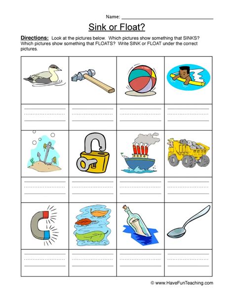 Sink Float Identify Worksheet Have Fun Teaching
