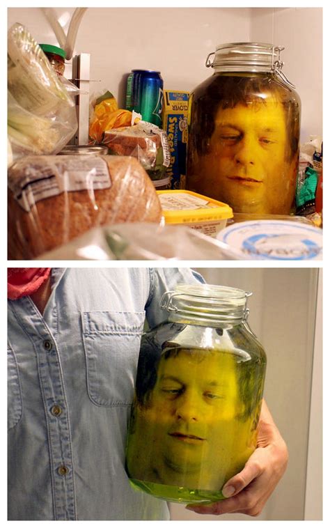 The best kitchen prank is putting a human head in a jar inside a fridge
