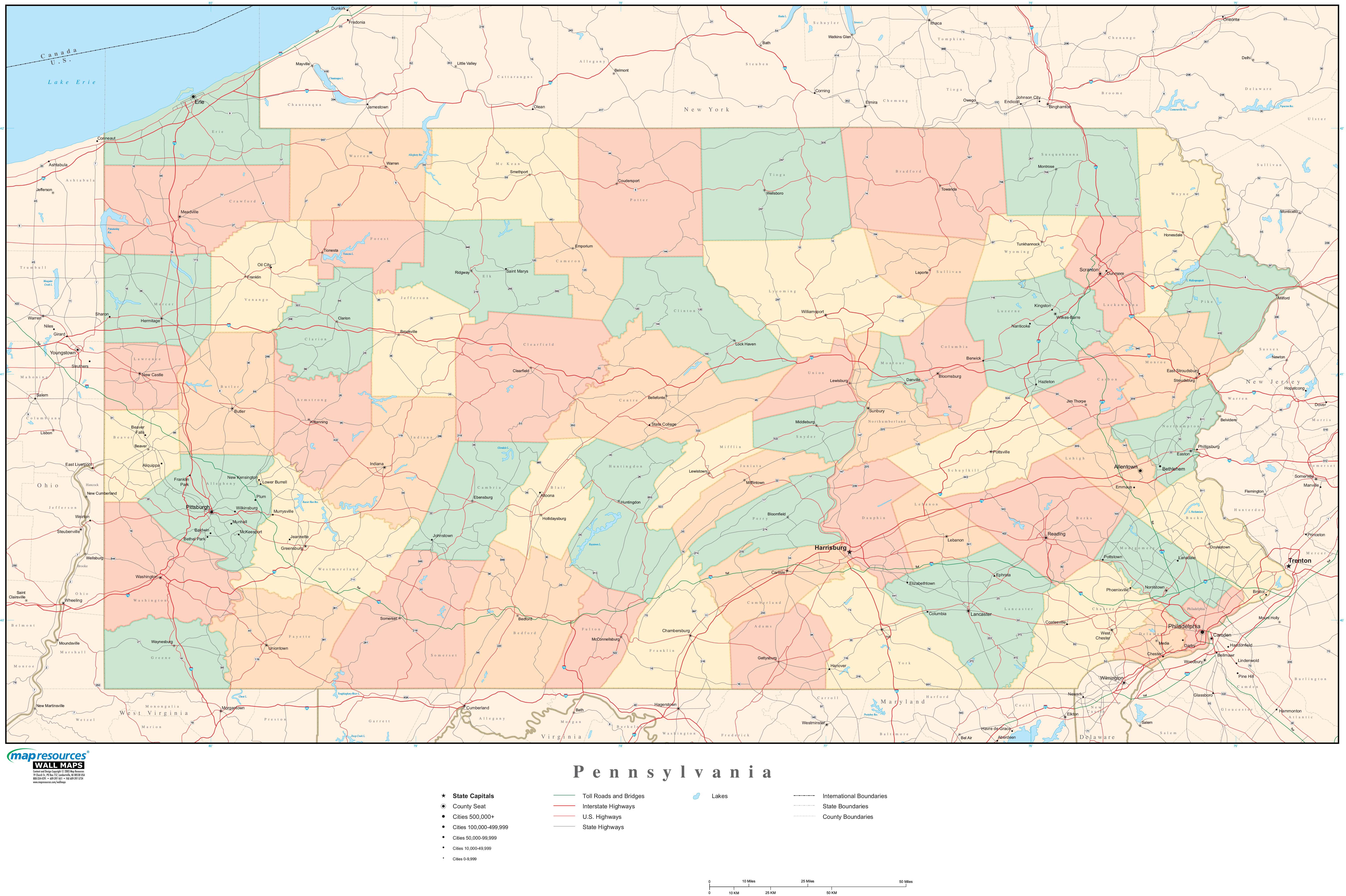 Pennsylvania Wall Map with Counties by Map Resources MapSales