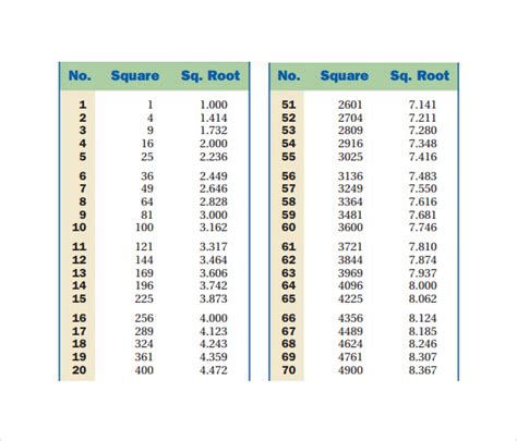FREE 7+ Sample Square Root Chart Templates in PDF