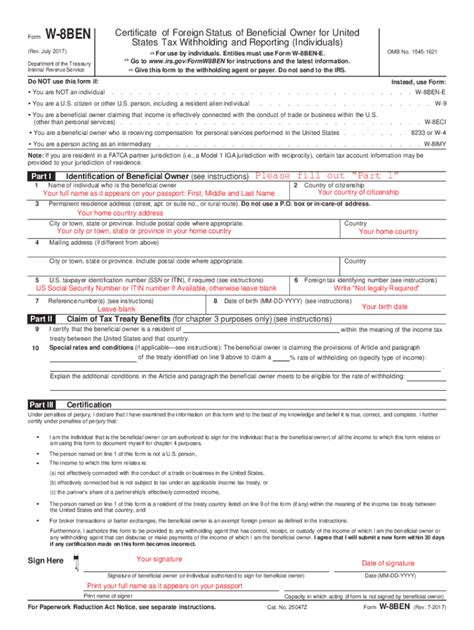 How to fill out a W8BEN form